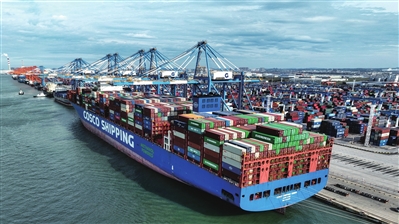 11月11日,一艘海轮在钦州港集装箱自动化码头卸货。记者11月30日从国铁南宁局获悉,截至11月29日,西部陆海新通道班列累计发送集装箱货物突破500万标箱、达500.3万标箱,其中今年以来发送突破130万标箱,同比增长55.3%,保持强劲增长势头。