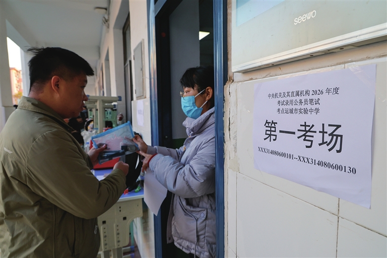 | 11月30日,中央机关及其直属机构2026年度考试录用公务员公共科目笔试在全国各考区统一举行。图为在山西省运城市实验中学考点,考生有序进入考场。 新华社发(闫鑫 摄) |