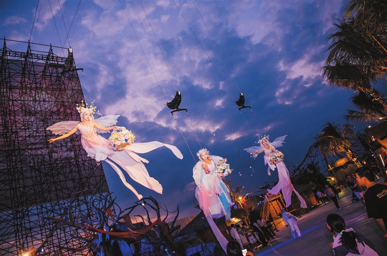 12月6日晚,三亚海昌梦幻海洋不夜城灯火璀璨,“看见三亚沉浸式夜游部落”正式开园,带来精彩的情景表演,为三亚夜间消费场景再添新亮点。