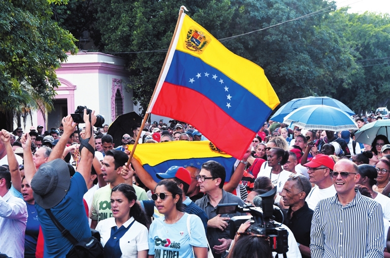 | 12月6日,在古巴首都哈瓦那,人们参加声援委内瑞拉的集会。 新华社发(华金·埃尔南德斯 摄) |