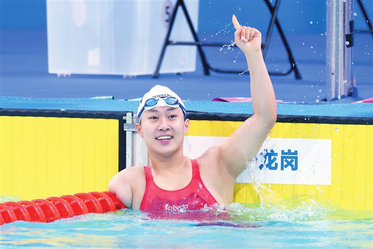 游泳赛场上多次刷新全国纪录。巴黎残奥会冠军蒋裕燕在当日收获两枚金牌,看着一项项全国纪录被打破,她表示“备受鼓舞”。“残疾人朋友们不要给自己设限,没有那么多不可能,只要努力迈出第一步,就会把不可能变为可能。”蒋裕燕说。