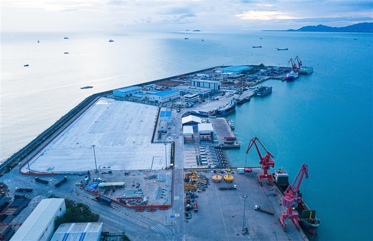 在海南自贸港重点园区——三亚崖州湾科技城拍摄的南山港(无人机照片,10月30日摄)。