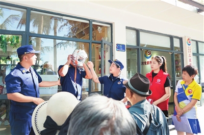 12月12日上午,市消防救援支队宣传员走进海月广场,为返琼过冬的“候鸟”老人开展冬季防火知识宣传。