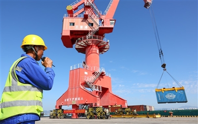 12月18日,在三亚港“二线口岸”南山港区海关查验场,第一批出岛货物在顺利通关后,吊装上船。