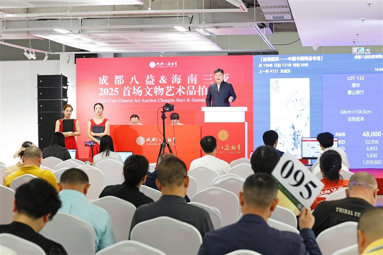 成都八益拍卖系西南文物艺术品拍卖头部企业,本次拍卖会是其在三亚举办的首场拍卖会,也是国家对外文化贸易基地(三亚)2025年成都推介会的招商成果之一。成都八益文化产业发展有限公司、成都八益拍卖有限公司总经理郭海宁表示,海南自贸港的政策优势与区位条件,以及中国海南国际文物艺术品交易中心和海南国际文化交流中心(以下简称“双中心”)等重点项目提供的支撑,都是企业选择落户的重要原因。企业初步计划在三亚设立分公司,打造八益艺术空间并成立文物商店。