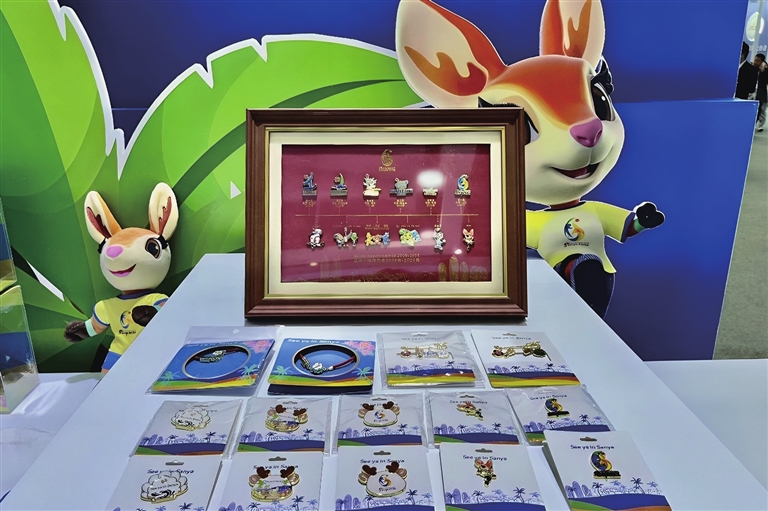 特别引人注目的是“历届亚沙会会徽组合套装”与“三亚主题金属冰箱贴”,将天涯海角、鹿回头等三亚地标与赛事主题深度融合,兼具纪念价值与收藏意义。现场通过场景化布展还原热带滨海赛事氛围,结合静态展陈、实物展示与视频宣传,全方位呈现三亚亚沙会特许商品体系。