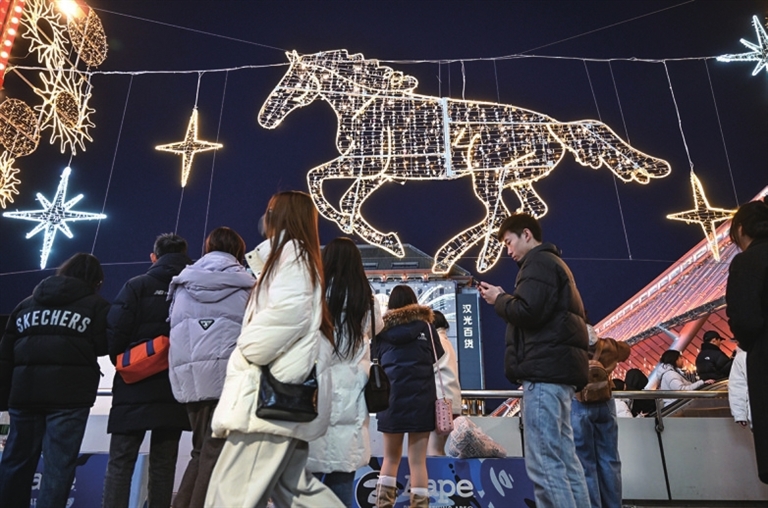 随着农历马年的脚步渐近,北京街头巷尾的节日氛围逐渐升温,吸引众多游客游玩观赏。