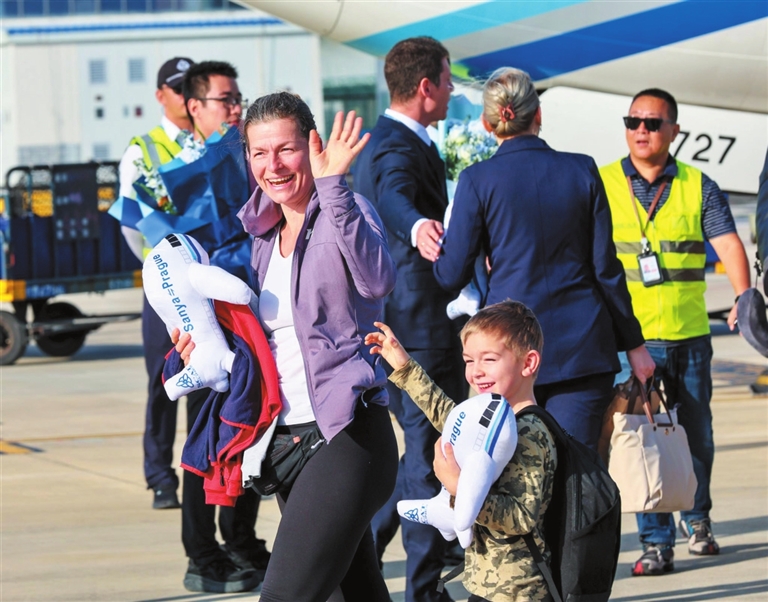 “这里真的很好,是非常温暖的城市,我们那里气温现在是零下2℃,大家都穿着厚重的冬衣,而三亚如此温暖,让人觉得不可思议。”刚走下舷梯,来自捷克的旅客特蕾莎·齐卡(Tereza Zika)便被三亚的温暖气候深深吸引,忍不住向迎接人员分享此刻的心情。同为捷克旅客的尼科尔(Nikol)则满眼期待:“我们此次行程为期一周,一下飞机就被震撼了,天气太舒服了。这是我第一次来三亚,早就向往这里的大海和沙滩,期待能度过一个愉快的假期。”