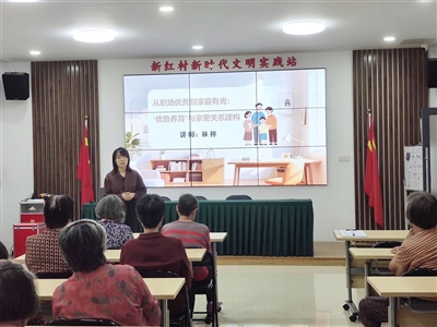 本报讯(记者 陈超全)12月23日,由吉阳区新时代文明实践中心、新红村新时代文明实践站联合主办的“家风家教进万家、文明实践暖人心”主题授课活动在新红村举行。活动特邀三亚市家庭教育协会理事、心理咨询师林梓为村民授课,围绕家庭亲子关系维护、科学关怀子女等内容展开深入讲解,旨在帮助村民提升家庭教育水平,营造和谐家庭氛围。