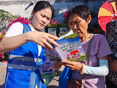 | 志愿者向居民宣传普及“禁塑”知识。 黄珍 摄 |