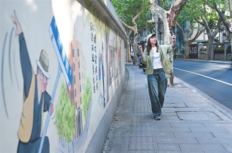 | 法国姑娘乐盖曦在上海市南昌路拍摄Vlog视频(9月22日摄)。 |