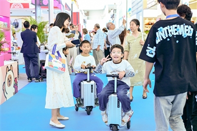 12月27日,2025第十届三亚国际文化产业博览交易会现场,电动旅行箱备受关注。 本报记者 陈聪聪 摄