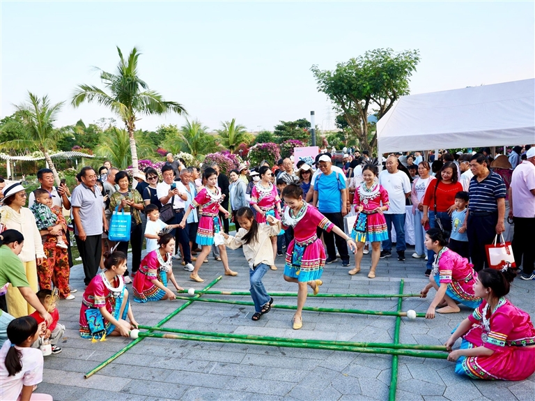 活动现场最具人气的当属“全球大市集”,国际展区与中国文化展区的特色展位前,随处可见中外互动的场景。在非遗体验区,几位外国留学生正围在糖画师傅周围。来自埃及的一名留学生在糖画师傅的指导下慢慢画出一朵花,身旁的三亚市民立刻鼓掌:“姐姐,你画得真好看!”温馨互动中,非遗技艺成为跨越语言的交流桥梁。