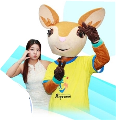 | ?观众在三亚主题形象展馆和三亚亚沙会吉祥物“亚亚”互动拍照。 本版图片由 本报记者 袁永东 陈聪聪 摄 |