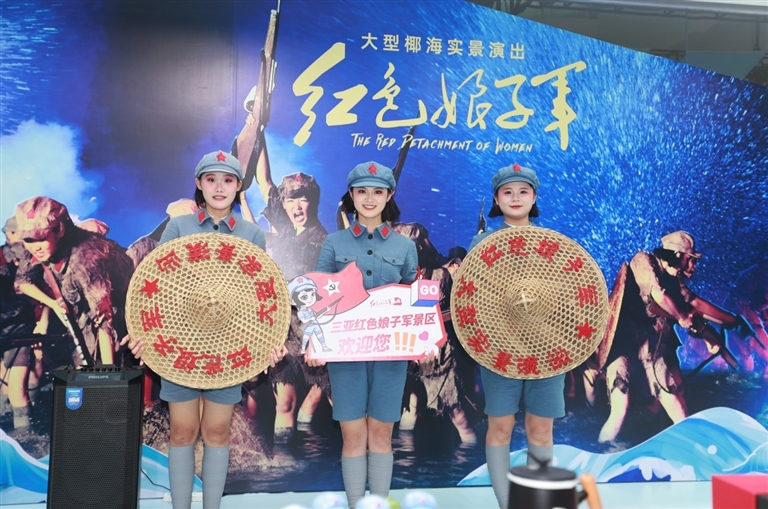 | 《红色娘子军》大型椰海实景演出的演艺人员进行宣传展示。 |