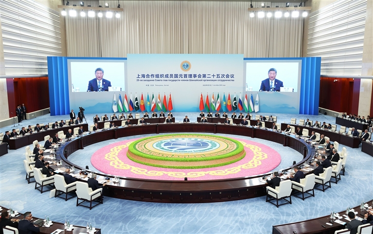 一年来,习近平主席出席上海合作组织天津峰会、纪念中国人民抗日战争暨世界反法西斯战争胜利80周年大会、全球妇女峰会等活动,访问东南亚三国、俄罗斯、韩国,出席第二届中国-中亚峰会、亚太经合组织第三十二次领导人非正式会议、金砖国家领导人线上峰会,在联合国气候变化峰会发表视频致辞;同各国领导人及国际政要深入晤谈沟通;通过会见、致信等形式面向各国人民开展友好工作。习近平主席深刻洞察时代大势,继三大全球倡议后,提出全球治理倡议,得到国际社会广泛响应和支持,为人类和平与发展的崇高事业不断作出重要贡献。