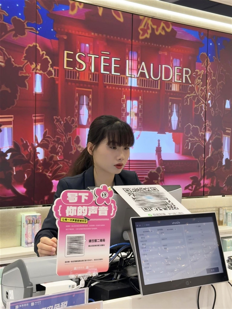 店内,空气中弥漫着淡淡的香水与化妆品香味,各柜台咨询、试用、下单的顾客络绎不绝。“从开门到现在,基本没停过。”赖红丽一边快速为一位顾客试妆,一边用眼神示意另一位正在等候的客人稍等片刻。她身旁的收银台前排起了长队。