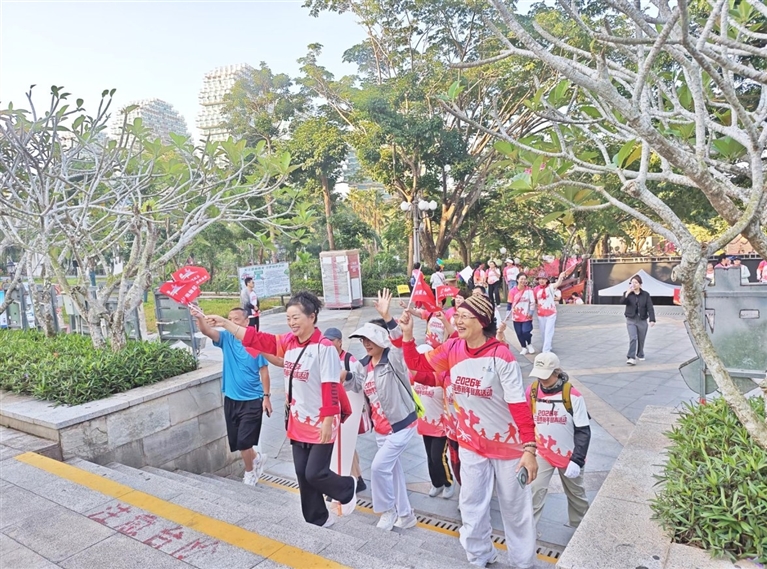 本报讯(记者 刘盈盈)“五星红旗迎风飘扬,胜利歌声多么响亮……”1月1日清晨,三亚临春岭森林公园内歌声嘹亮、喜气洋洋,“新年登高展风采,健康三亚向未来”2026年三亚市新年登高活动活力启幕,500余名市民游客齐聚山林间,迈出新年健康“第一步”。
