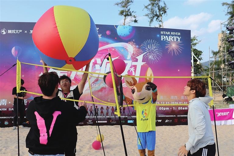本报讯(记者 王昊)1月2日,三亚亚龙湾海滨热闹非凡,一场汇聚音乐、运动与市集的“星河派对”在此举办,吸引逾万名市民游客参与,现场气氛热烈。第六届亚洲沙滩运动会(以下简称“三亚亚沙会”)吉祥物“亚亚”穿梭于海浪市集、变装小站与互动舞台之间,与游客亲切互动、合影,为元旦假期增添了一抹灵动与欢乐。