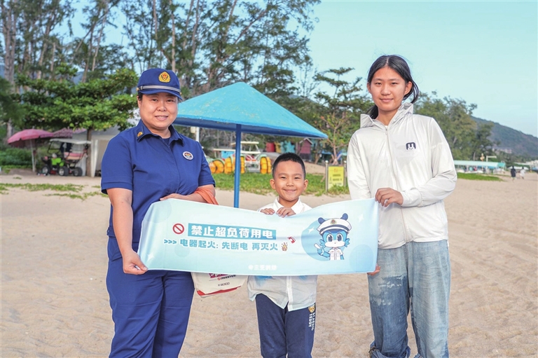 1月2日下午,三亚消防在亚龙湾开设“流动课堂”,为游客现场讲授涉旅安全知识。消防员在沙滩重点讲解离岸流识别与自救方法,在酒店区域演示灭火器、防毒面罩等器材操作,吸引众多游客参与学习。该活动受到游客欢迎,此类消防安全宣传还将在三亚各热门区域持续开展。 本报记者 刘琪成 通讯员 付乐 摄影报道