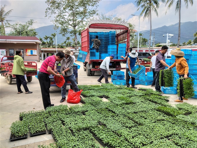 “区里不仅给我们鼓劲,更送来了实实在在的帮助!”近日,在罗蓬村委会大院里,一场特别的农资发放现场里,脱贫户们脸上洋溢着喜悦与期盼。在吉阳区农业农村局的精心组织与罗蓬村乡村振兴工作队的密切配合下,超过10万株长势喜人的阳雀湖辣椒种苗等农资,被有序发放到村里25户有种植意愿的脱贫户手中。