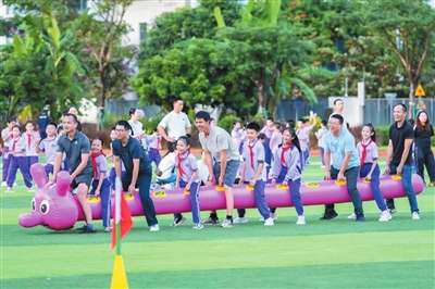 冬日的崖州湾科技城南开小学,亲子运动会暖意融融,成为校园里的“氛围感天花板”。夹球跑时的默契同步、毛毛虫竞速时的整齐口号、两人三足时的并肩前行……一个个趣味盎然的项目,让家长与孩子在欢声笑语中拉近距离,在协同合作中体悟责任与信任的重量。赛场边此起彼伏的加油声、合影时定格的灿烂笑脸,都化作成长路上最珍贵的温暖记忆。