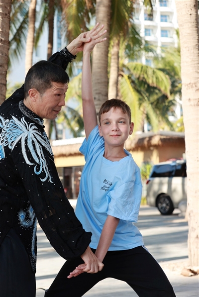 本报讯(记者 袁永东)1月9日上午,在三亚大东海旅游区,暖阳高照,椰树林荫里,25名来自俄罗斯、白俄罗斯、西班牙、塞浦路斯、美国等国的“洋弟子”师从沈智学习沈氏太极拳。这些外国弟子中,有夫妻携手同修,有姐妹相伴共练,更有一家四口齐上阵,共同沉浸在中华传统养生文化的魅力之中。