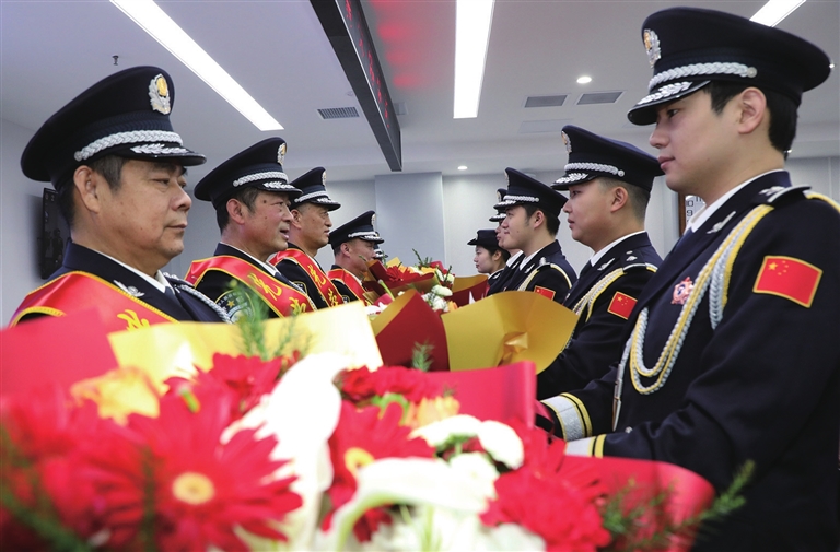 | 1月10日,浙江省台州市公安局黄岩分局举行升警旗仪式。新华社发(喻跃翔 摄) |
