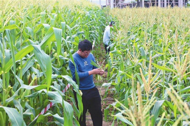 三亚是国家南繁科研育种的核心区,培育好玉米品种是这里的重要任务。为了培育出这款优质玉米,海南南繁种业集团从2022年起就与广东省农科院开展合作,科研人员跑遍了三亚、广州、张掖等地,在田里一遍遍做试验,从成千上万份玉米组合里挑出最好的,花了两年多时间才培育出“海垦玉520”。2023年他们还建了海南鲜食玉米种业创新中心,2024年该品种成功实现落地种植,目前在广东、海南等地种植规模已达2000亩。