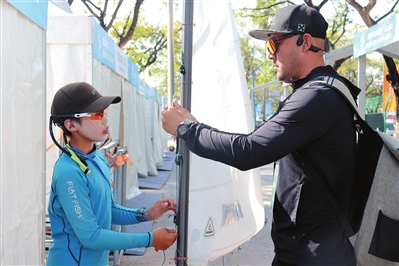 步入海虹广场竞赛场馆,一片整洁的白色帐篷群在阳光下格外醒目。各岗位工作人员早已就位,或调试设备,或整理物资,或核对流程,一切忙碌而有序。海风穿过帐篷间隙,隐约带来远处海浪的节奏,仿佛在为这场水上盛会的启幕轻声伴奏。