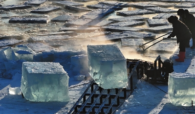 寒冬时节,第二十七届哈尔滨冰雪大世界正值迎客旺季。在距园区不远处的松花江哈尔滨段江面上,存冰开采工作已全面开启。哈尔滨冰雪大世界每年都会在采冰季挑选出一批冰块储存,采用传统储冰与现代多层保温技术相结合的方式,让冰块储存近一年时间不融化,供下一届冰雪大世界建设时使用。
