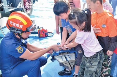 | 孩子们在了解消防器材。 |