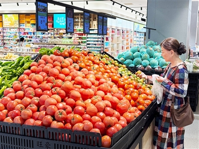 “超市里品种齐全,随时来都能买到新鲜的,价格也在可接受范围里。”市民冯女士仔细比对后,挑选了满满一袋西红柿。