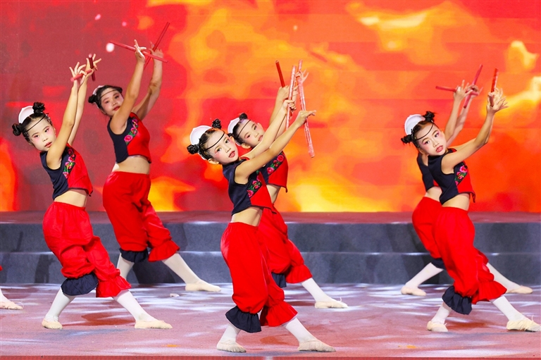 古韵新声,是文化传承的脉络。京歌《说唱梨园》融京剧唱腔与流行说唱,黎族铃铛舞缀满清脆韵律,《一梦敦煌》再现丝路盛景,《妹仔跳花棚》摇曳乡土风情。中西乐器合奏《霍元甲》尽显侠气锋芒,椰壳敲击声奏响海岛欢歌,古今交融间,是少年对文化根脉的守望与创新。