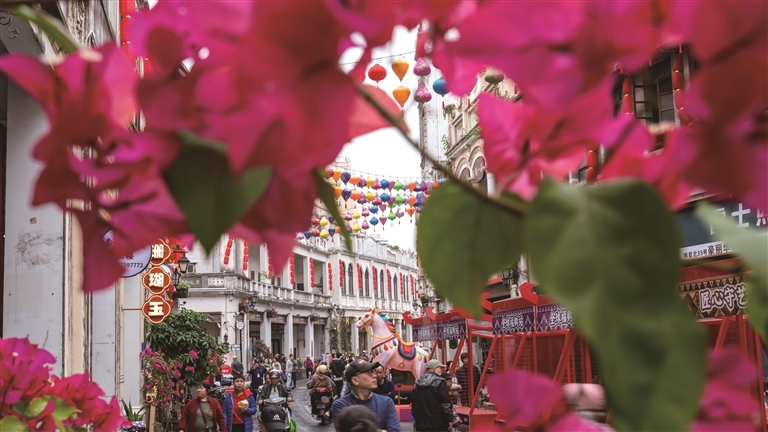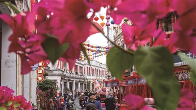 | 临近春节,海口骑楼老街人气爆棚。(记者 刘孙谋摄) |