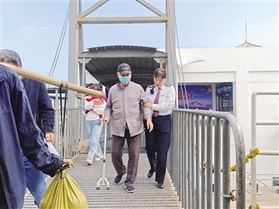 “请大家有序排队,注意脚下安全。”结束完准备工作,刘霞风风火火赶到登船梯口,一边引导旅客,一边留意着人群中的特殊身影。