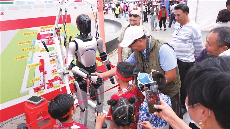 | 众多游客与全尺寸人形机器人“小智” 互动。记者 吴兴财 摄 |