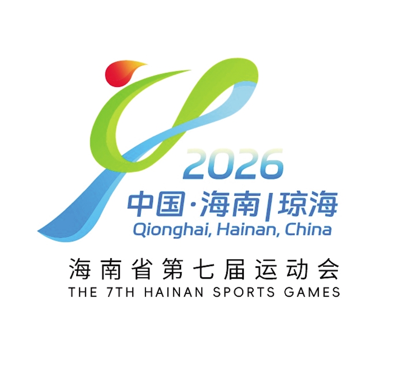 本届省运会会徽《聚力琼海,燃动海南》,以汉字“七”的笔画为骨架进行艺术变形,直观点明赛事届次。图形主体以红色娘子军昂扬飒爽的跳跃姿态为原型,舒展上扬的线条复刻了其斗志昂扬的精神风貌,红色元素的运用精准锚定了琼海的革命基因,让红色文化成为会徽的精神底色。