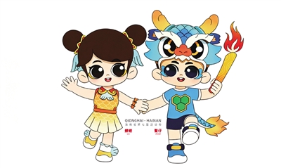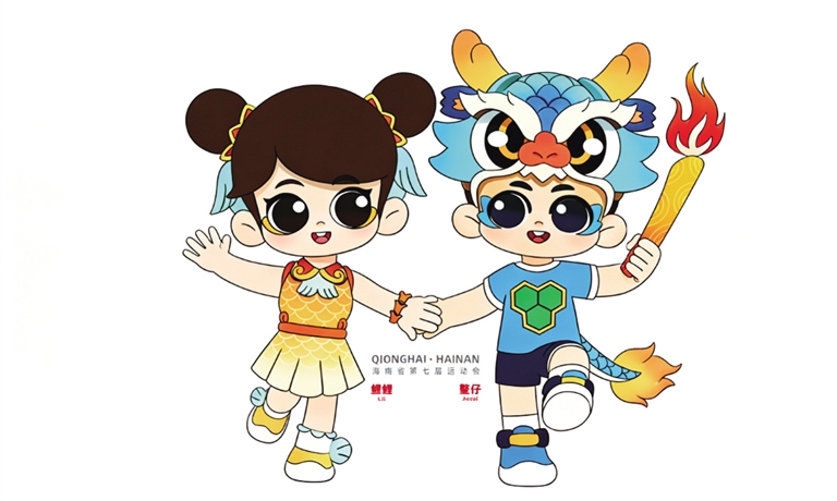 本届省运会吉祥物是“鳌仔”和“鲤鲤”。他们以约7岁孩童的造型呈现,充满朝气,生动体现了海南人民的热情与活力。