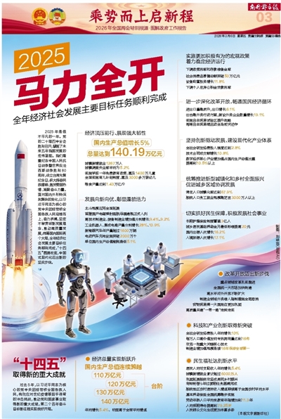 2025年是很不平凡的一年。党的二十届四中全会胜利召开,擘画了未来五年我国发展的宏伟蓝图。我们隆重纪念中国人民抗日战争暨世界反法西斯战争胜利80周年,设立台湾光复纪念日,极大振奋民族精神、激发爱国热情、凝聚奋斗力量。面对国内外形势深刻复杂的变化,以习近平同志为核心的党中央团结带领全国各族人民迎难而上、奋力拼搏,坚定不移贯彻新发展理念、推动高质量发展,统筹国内国际两个大局,全年经济社会发展主要目标任务顺利完成,“十四五”圆满收官,中国式现代化迈出新的坚实步伐。
