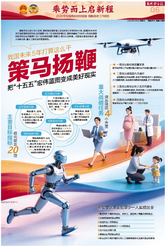 据新华社北京3月5日电国务院总理李强5日在政府工作报告中介绍,根据《中共中央关于制定国民经济和社会发展第十五个五年规划的建议》,国务院编制了《中华人民共和国国民经济和社会发展第十五个五年规划纲要(草案)》,提交大会审查。这里就主要目标指标、重大战略任务、重大工程项目作简要报告。