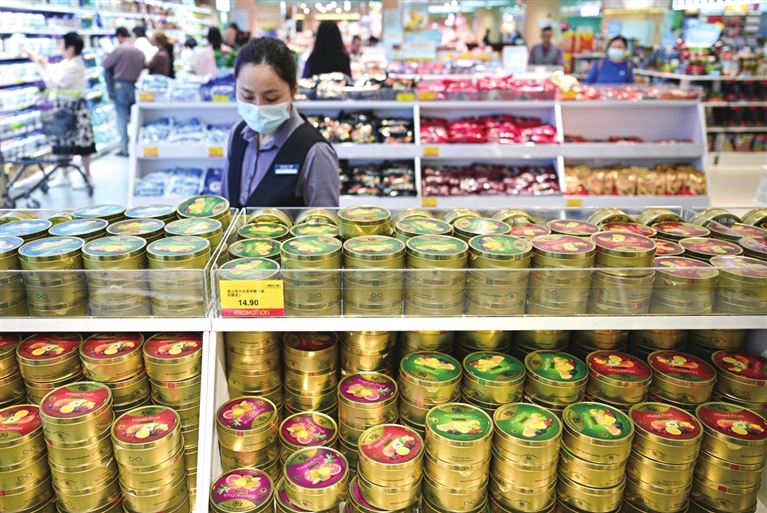走进三亚市珠海免税日用消费品免税店,来自德国的巧克力、瑞士的奶粉、澳大利亚的樱桃,这些以往需要通过离岛免税或跨境购物才能买到的进境商品,如今整齐陈列在商场里。“商品种类越来越多,上次来给孩子买了进口的奶粉和尿不湿,这次来看到了我一直想买的洗发水,价格实惠,品质也更放心!”正在选购洗护用品的三亚市民刘女士说。