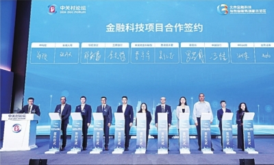 工行湖北省分行副行长兼武汉分行行长李松涛(右七)出席2024中关村论坛金融科技平行论坛并代表工行武汉分行签署科技金融创新领域合作应用项目合作协议。