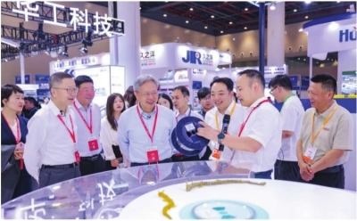 2024中国光谷·光电子信息产业创新发展大会成果发布区,马新强(左二)等光谷知名企业家带队探展。
