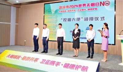 5月30日,武汉市2024“世界无烟日”主会场活动在东湖高新区举行,主题为“无烟环境·你我共享,卫企携手·健康护航”。在过去一周,分会场活动陆续走进九个城区龙头企业和园区,先后有31位不同年龄、不同岗位的代表被授予“控烟大使”称号。