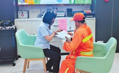 邮储银行武汉市分行邮爱驿站为环卫工人开展防诈骗宣传。