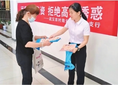 坚持风险提示“主引擎”。武汉农村商业银行各营业网点将防范诈骗风险的措施有效融入到日常工作中,通过LED滚动播放防诈标语、张贴防诈提示图、柜台放置的防诈提示牌和安全提示卡等方式,有效提醒客户注意诈骗风险。同时,在理财专柜醒目位置标注“理财有风险,投资需谨慎”标语,通过理财双录、理财风险揭示书等必要环节充分告知客户金融产品的投资风险。在网点日常开展的金融知识宣教“小课堂”、宣教“小分队”通过微沙龙形式向重点人群如老人、年轻客户宣传非法集资条例和新型非法集资的表现形式,做好日常的风险提示。