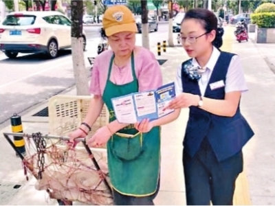 银行员工在大街小巷宣传,增加防非知识宣传受众面。