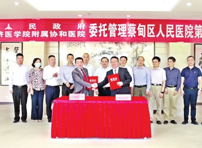 武汉协和医院托管蔡甸区人民医院第二周期托管协议签约仪式。