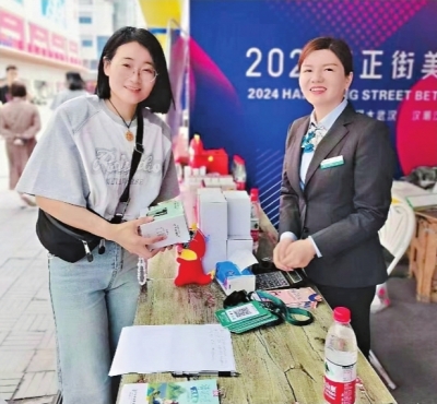 农业银行员工向汉正街商户宣讲金融产品及优惠政策。 |